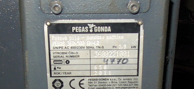 Ленточнопильный станок Pegas 360*500 GH-LR, 2011 г.в., серийный № 3600221001, инв. № по бух. учету 631