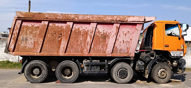 Автомобиль грузовой самосвал MAZ-6516 С9-581-005, 2019 г.в., регистрационный знак АТ 2407-5, рама № Y3М6516С9L0000386, инв. № 990910, цвет оранжевый (аварийный)